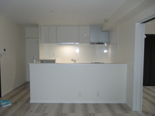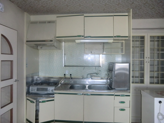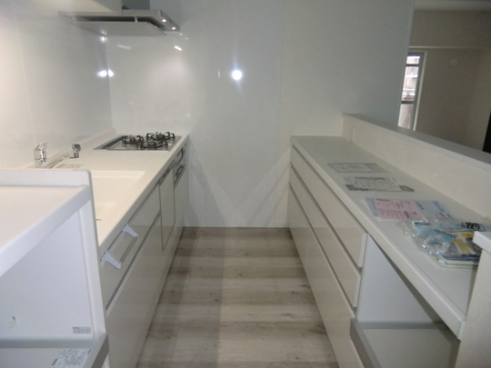 s様のご要望で冷蔵庫を廊下側に置きたいとのことで、コンロを反対に設置しなおしました。これで、