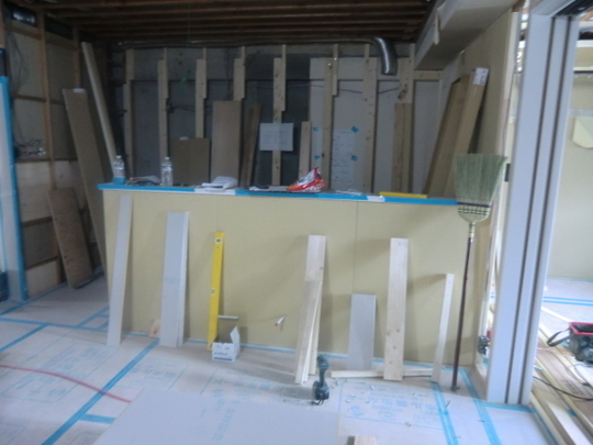 フローリングもリフォームし、キッチンを目隠し兼用のカウンターを作っています。