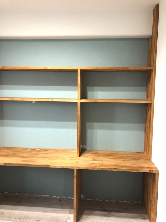 テレワーク対応事務所のリニューアル工事をしました。当初ただの棚を作っていた部分に造作で机をつくりました。