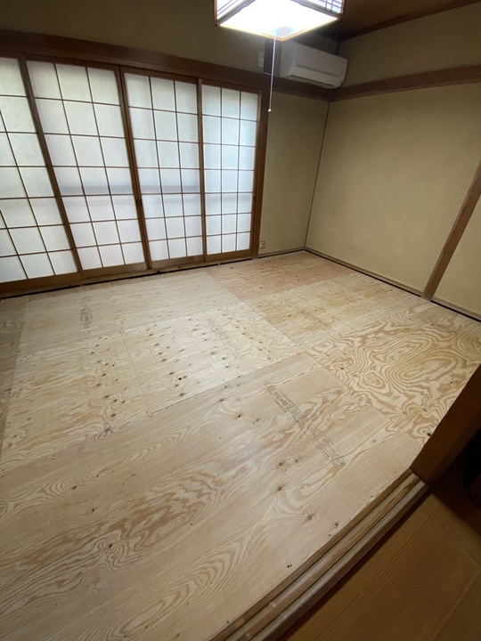交野市のA邸。6畳の和室の畳下の木が劣化してボコボコするという事で補強工事と畳の入れ替えのリフォームです。