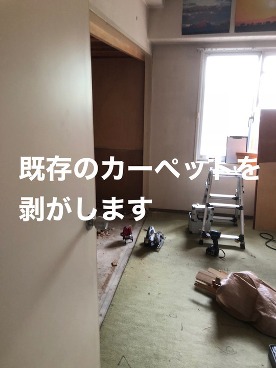 先ずは古いカーペットをはがしていきます