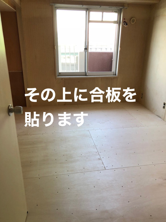 そのままだとクッションフロアが貼れないのでごうはんをはります。