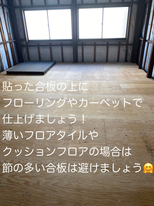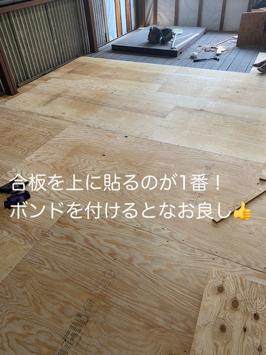 12mmの合板を既存の床の上に張り補強完了いたしました。