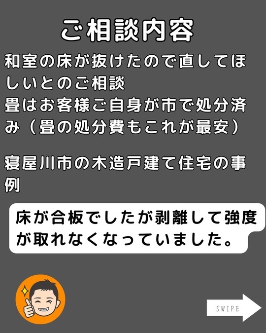 畳はお客様ご自身で自治体の指定ごみで処分済み(実はここで値段削減できます。)