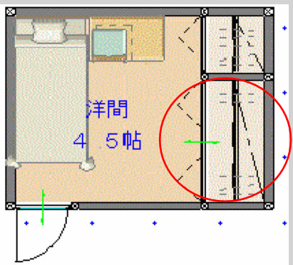 赤色で囲った部分を追加。部屋はせまくなるが、収納は充実。