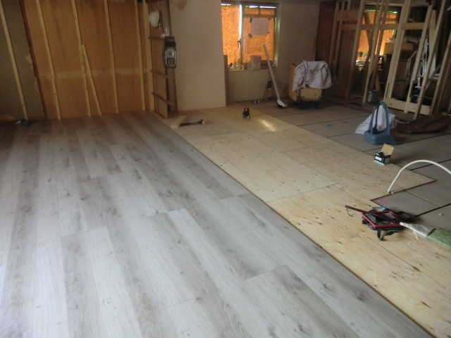 既存の床を解体し遮音束を用いて階下への音も配慮した床上げをしました。
