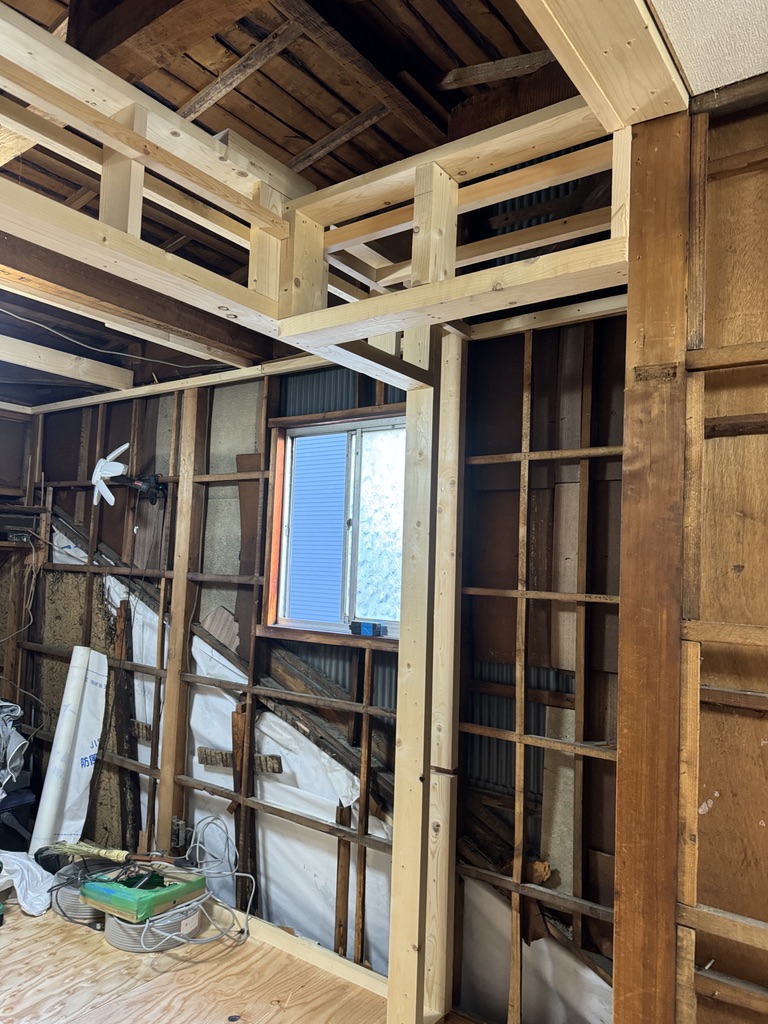 内装を剥がし、家の骨組みの状態からチェック・補強します。